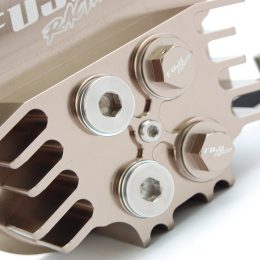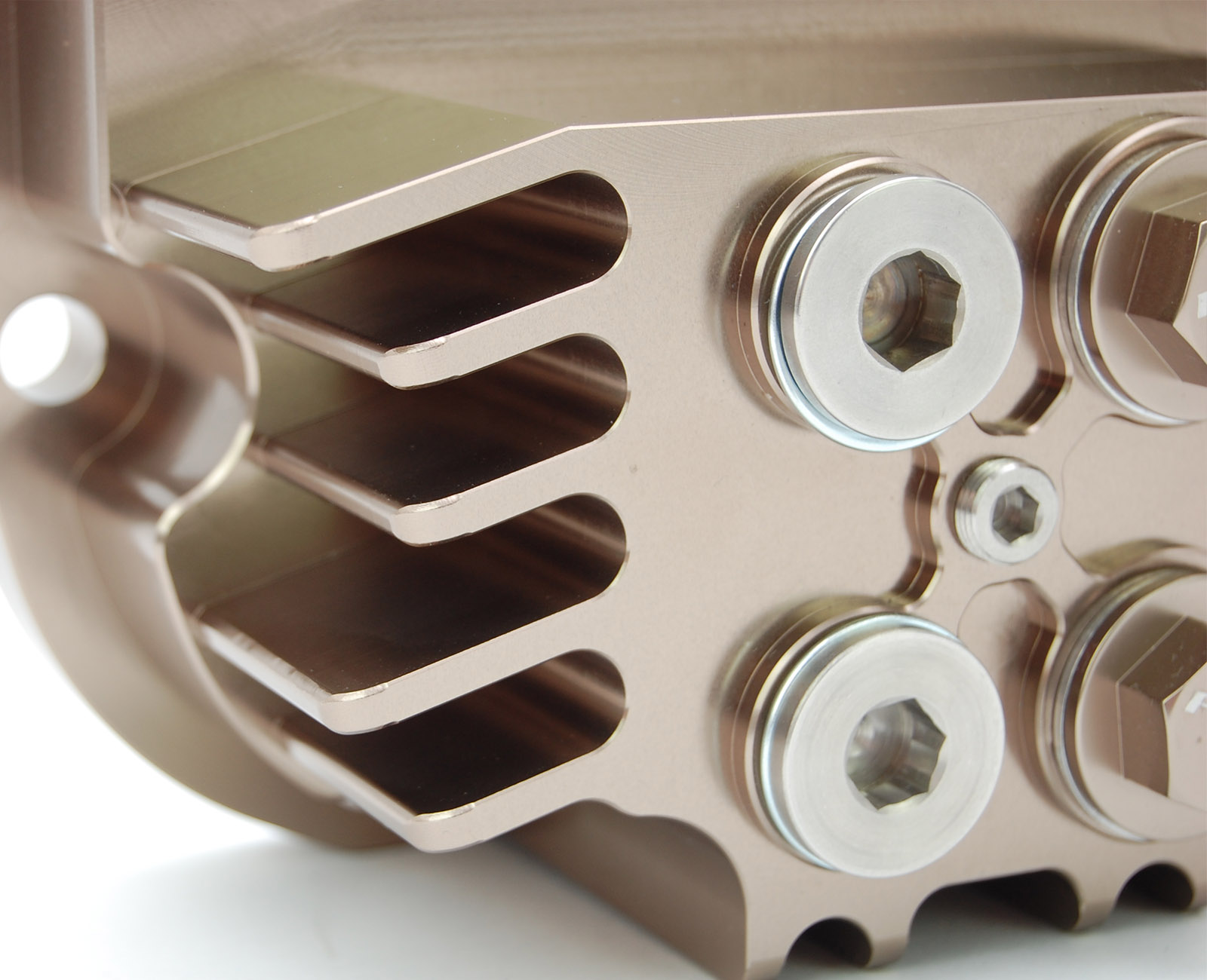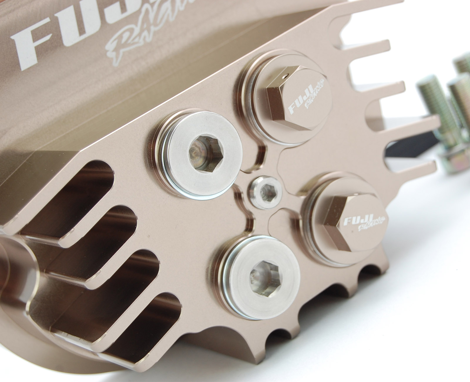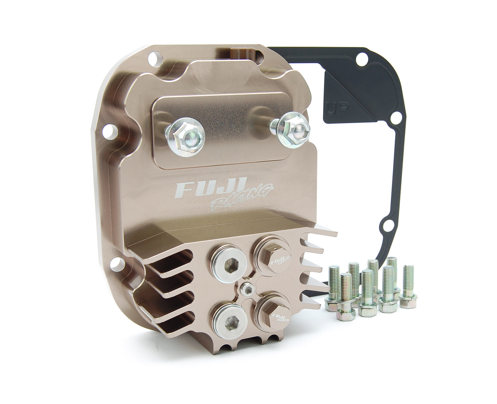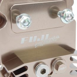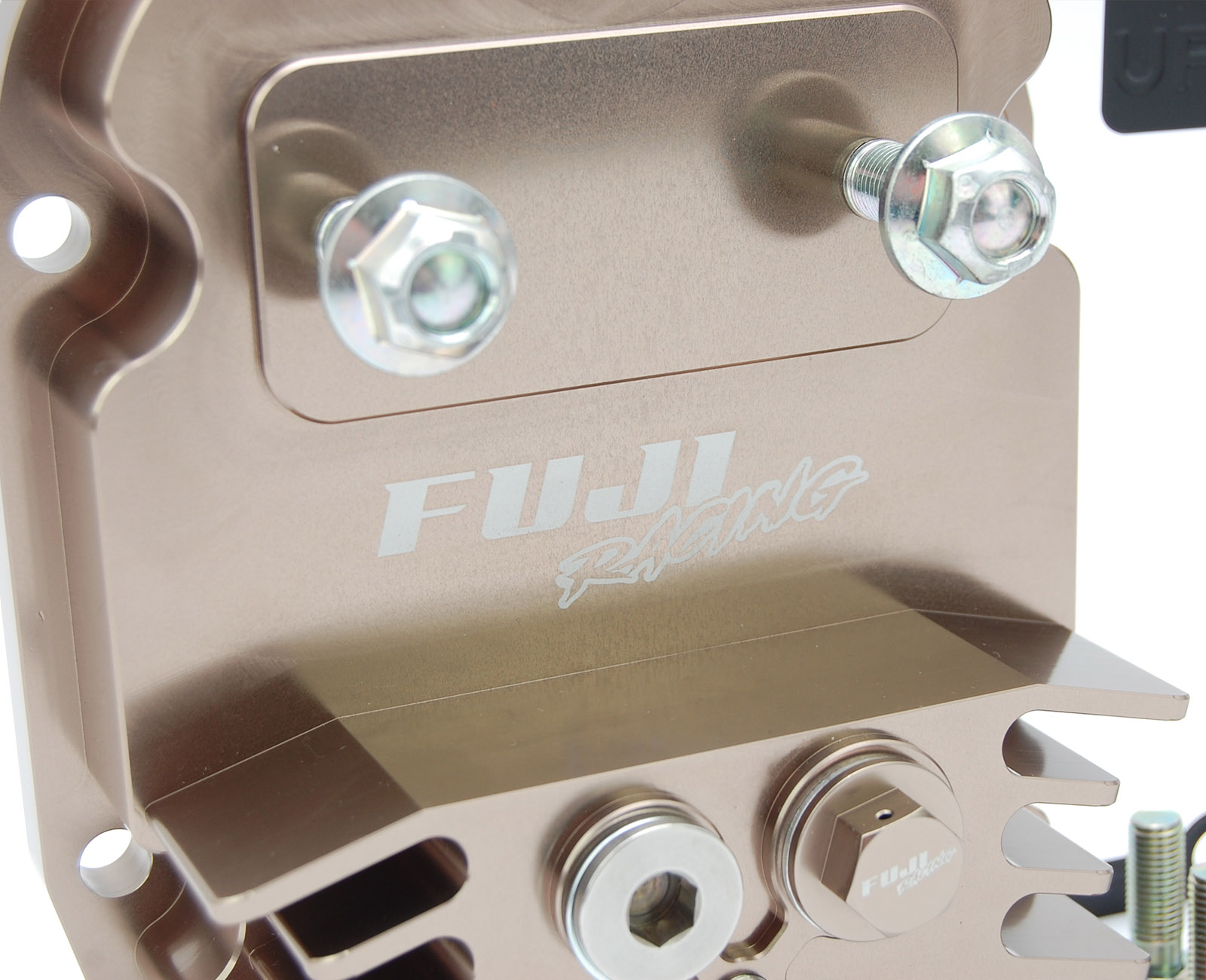 The Fuji Racing High Capacity Subaru R180 rear diff cover has been built from a blank sheet with over a year of testing, we have seen whats on the market and stepped it up a notch. manufactured using the latest CNC techniques, each cover is micro-polished to give a perfect finish for the fuji racing gold anodising. all leading edges are also bevelled to provide a premium machined finish too.
